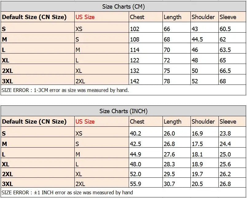 1.This jacket default size (tag size) is CN size , please choose size Based on our Size Chart !!!